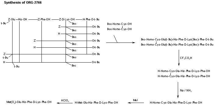 A new synthesis of ORG-2766 has been performed using the normal methods of peptide synthesis and following the scheme presented. This method has been used to prepare ORG-2766 labeled with 11C at the methanesulfonyl group of the methionine analogue.