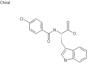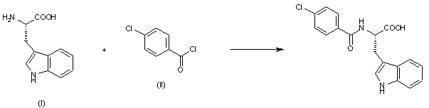 By acylation of L-tryptophan (I) with 4-chlorobenzoyl chloride (II).