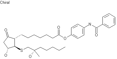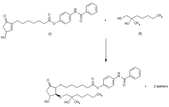 EMD-33.290 can be prepared by conjugate addition of 2-hydroxy-2-methylheptanethiol (II) to 3-hydroxy-5-oxocyclopentenylheptanoic acid p-benzamidophenyl ester (I) to give rise to the title compound as the main product (III) along with two epimers. Isolation of pure EMD-33.290 can be achieved by medium-pressure chromatography. An alternative synthesis utilizing the Roberts' approach has been reported to give the appropriate PGF2alpha analogue, which is converted to EMD-33.290 by selective oxidation.