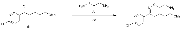 By reaction of p-chloro-5-methoxyvalerophenone (I) with 2-aminooxyethylamine (II) in refluxing pyridine-ethanol.
