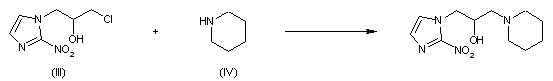 2) By condensation of 1-(3-chloro 2 hydroxypropyl)-2-nitroimidazole (III) with piperidine (IV) in refluxing methanol.
