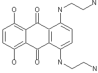 By condensation of 2,3-dihydro-1,4-dihydroxyanthraquinone (I) with N-(aminoethyl)ethanolamine (II) in refluxing ethanol, followed by oxidation with air and treatment with acetic acid.