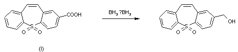 By reduction of dibenzo[b,f]thiepin-3-carboxylic acid 5,5-dioxide (I) with diborane in THF.