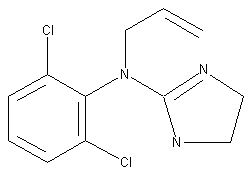 By condensation of 2-(2,6-dichloroanilino)-2-imidazoline (I) with allyl bromide (II) by means of pyridine in refluxing methanol.