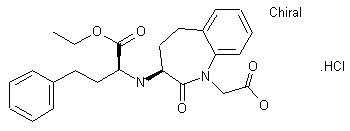 The reaction of 2,3,4,5-tetrahydro-1H-(1)benzazepin-2-one (I) with PCl5 in hot xylene gives 3,3-dichloro-2,3,4,5-tetrahydro-1H-(1)benzazepin-2-one (II), which is treated with sodium acetate and reduced with H2 over Pd/C in acetic acid yielding 3-chloro-2,3,4,5-tetrahydro-1H-(1)benzazepin-2-one (III). The reaction of (III) with sodium azide in DMSO affords 3-azido-2,3,4,5-tetrahydro-1H-(1)benzazepin-2-one (IV), which is condensed with benzyl bromoacetate (V) by means of NaH in DMF giving 3-azido-1-(benzyloxycarbonylmethyl)-2,3,4,5-tetrahydro-1H-(1)benzazepin-2-one (VI). The treatment of (VI) with Raney-Ni in ethanol-water yields 3-amino-1-(benzyloxycarbonylmethyl)-2,3,4,5-tetrahydro-1H-(1)benzazepin-2-one (VII), which is debenzylated by hydrogenation with H2 over Pd/C in ethanol affording 3-amino-1-(carboxymethyl)-2,3,4,5-tetrahydro-1H-(1)benzazepin-2-one (VIII). Finally, this compound is condensed with ethyl 3-benzylpyruvate (IX) by means of sodium cyanoborohydride in methanol acetic acid.