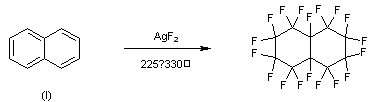 By a step fluorination of naphtalene (I) with AgF2 at increasing temperatures from 225 to 330 C under an N2 atmosphere.