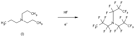 By electrochemical fluorination of triproplylamine (I) in anhydrous hydrogen fluoride.