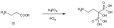 By reaction of beta-alanine (I) with the phosphorous acid and PCl3 in chlorobenzene at 100 C.