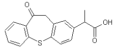 The cyclization of 5-(1-cyanoethyl)-2-(phenylthio)phenylacetic acid (I) with polyphosphoric acid at 120 C gives 2-(10-oxo-10,11-dihydrodibenzo[b,flthiepin-2-yl)propionitrile (II), which is then hydrolyzed with KOH in refluxing ethanol-water.