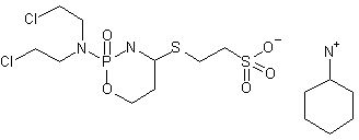Z-7557 can be prepared from 4-hydroxycyclophosphamide (I) and 2-mercaptoethanesulfonic acid cyclohexylamine salt (II) in water/acetone.