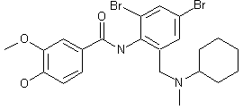 The acylation of 2,4-dibromo-6-(N-cyclohexyl-N-methylaminomethyl)aniline (I) with 4-(ethoxycarbonyloxy)-3-methoxybenzoyl chloride (II) in CHCl3 gives the corresponding amide (III), which is deprotected by a treatment with aqueous 20% NaOH.