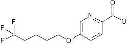 The condensation of 5-hydroxy-2-hydroxymethylpyridine (I) with 1,1,1-trifluoro-5-bromopentane (II) by means of KOH in hot DMF gives 5-(5,5,5 trifluoropentyloxy)-2-hydroxymethylpyridine (III), which is then oxidized with KMnO4 in butanol water.