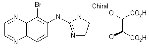 Several degradation products and metabolites of brimonidine have been synthesized: 1) The reaction of 5-bromoquinoxalin-6-amine (I) with cyanamide (II) and HCl in refluxing dioxane gives N2-(5-bromoquinoxalin-6-yl)guanidine (AGN-191383). 2) The reaction of AGN-191383 with 1,1'-oxalyldiimidazole (III) and dimethylaminopyridine (DMAP) in pyridine yields 2-(5-bromoquinoxalin-6-ylimino)imidazolidine-4,5-dione (AGN-192597). 3) The reaction of AGN-191383 with sodium iodoacetate (IV) in DMSO and then acidification with HCl affords 2-[N2-(5-bromoquinoxalin-6-yl)guanidino]acetic acid (AGN-192614).