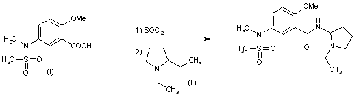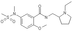 5-(N-Methylmethanesulfonamido)benzoic acid (I) is treated with thionyl chloride and 2-amino-methyl-1-ethyl-pyrrolidine to give title compound.
