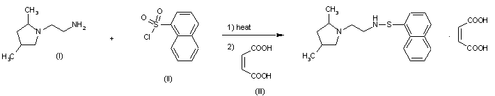 By condensation of 2,4-dimethyl-1-(2-aminoethyl)pyrrolidine (I) with 1-naphtalenesulfonyl chloride (II) in refluxing benzene, followed by a treatment with fumaric acid (III) in absolute ethanol.