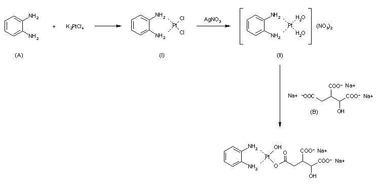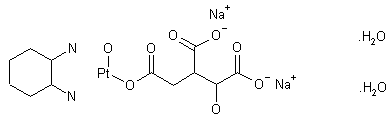 PHIC is prepared from the diaquo derivative cis-[Pt(diaminocyclohexane)(H2O)2](NO3)2 (II), which is obtained by addition of a stoichiometric amount of silver nitrato to cis-[PtCl2(diaminocyclohexane)] (I). Then isocitrate trisodium salt is added to the diaquo species (II) (1:1), and the mixtures heated to 60 C in the dark for 20 h. The yellow solution is concentrated. then treated with cold ethanol acetona (1:1) to give white PHIC precipitate. After the usual workup, PHIC is obtained (85%). The binding sites of the isocitrate ion to the platinum: diamino cyclohexane moiety have not been characterized.
