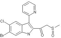 The diazotation of 3-bromo-4-chloroaniline (I) with NaNO2 - HCl in water followed by reduction with NaHSO3 gives 3-bromo-4-chlorophenylhydrazine (II), which is condensed with ethyl 2-pyridylpyruvate (III) by means of dry HCl in ethanol yielding 3-bromo-4-chlorophenylhydrazone of ethyl 2-pyridylpyruvate (IV). The cyclization of (IV) by means of H2SO4 in hot acetic acid affords ethyl-6-bromo-5-chloro-3-(2-pyridyl)indole-2-carboxylate (V), which is finally treated with the sodium salt of DMSO (VI) (prepared with NaH and DMSO) in the same solvent.