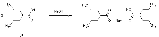 By reaction of valproic acid (I) with NaOH in water - acetonitrile (II).