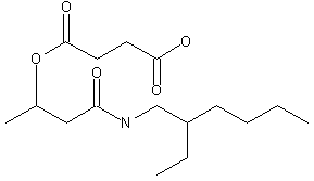 The reaction of diketene (I) with 2-ethylhexylamine (II) gives N-(2-ethylhexyl)acetoacetamide (III), which is reduced to the target compound with H2 over Raney-Ni in methanol.