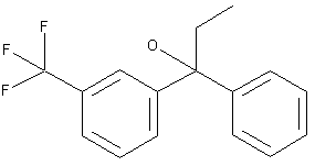 By a Grignard reaction between 3-trifluoromethylphenylmagnesium bromide (I) and propiophenone (II) in ethyl ether.